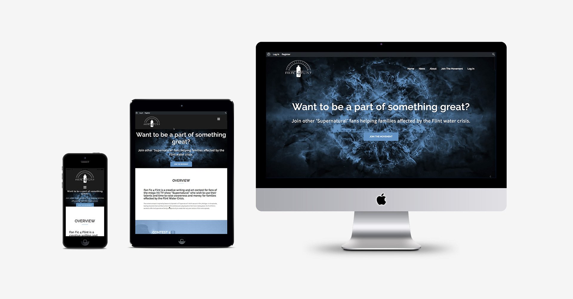 Fan Fic 4 Flint is an online community, fundraising initiative and competition aimed at fans of the 'Supernatural' TV series. The branding was designed with this in mind, attempting to be familiar to fans while clearly being tied to the city of Flint and its water crisis.